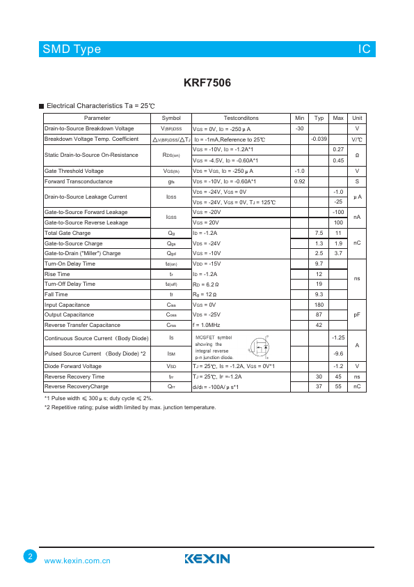 *3 ISD -1.2A, di/dt -140A/ s, VDD V(BR)DSS,TJ 150