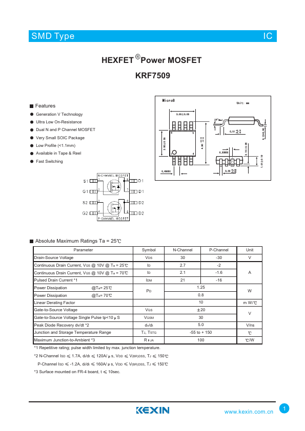 HEXFET Power MOSFET KRF7509