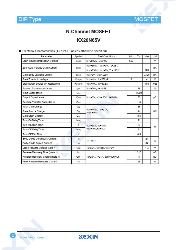 ● VDS (V) = 650V ● ID = 21A ● RDS(ON) < 180mΩ