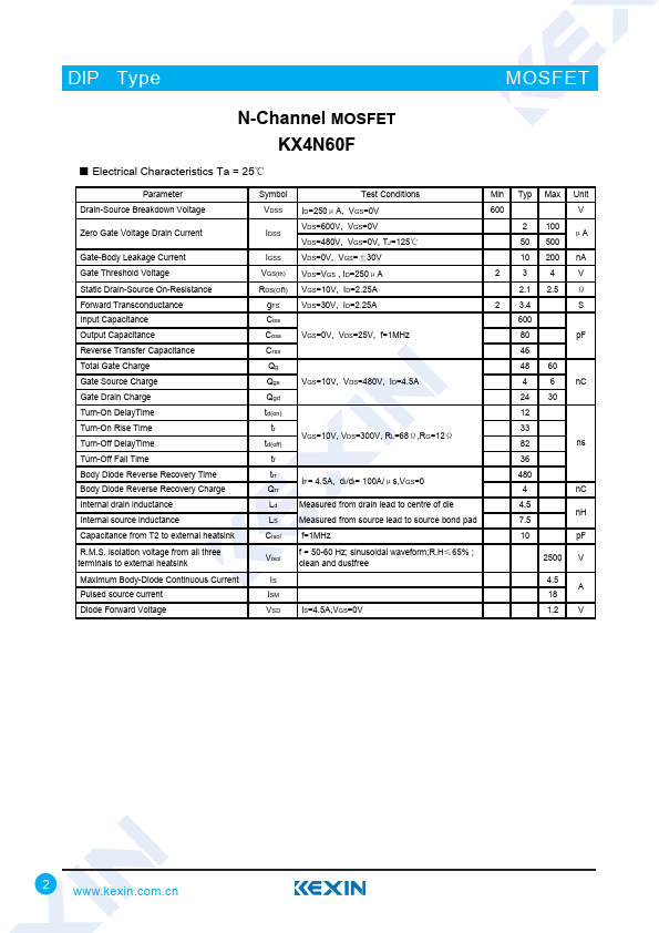 N-Channel MOSFET KX4N60F