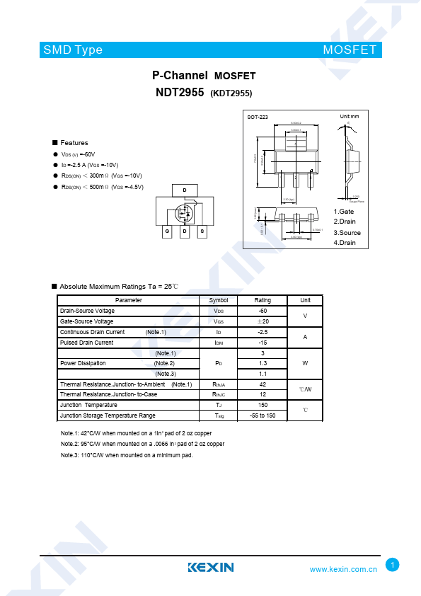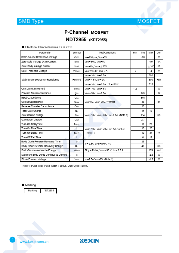 P-Channel MOSFET NDT2955 (KDT2955)