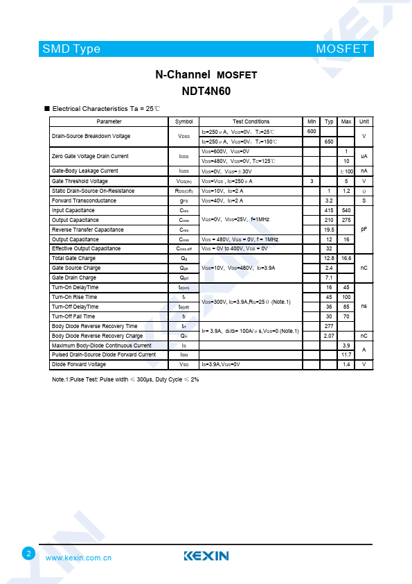 N-Channel MOSFET NDT4N60