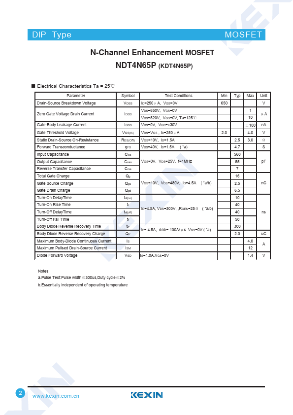 N-Channel Enhancement MOSFET NDT4N65P (KDT4N65P)