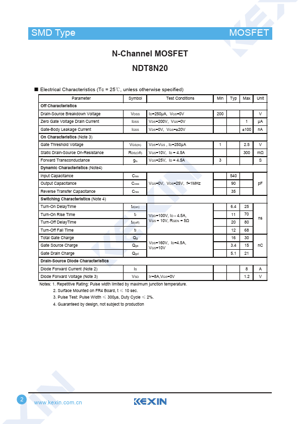 ● VDS =200V,ID =8A ● RDS(ON) <300mΩ @ VGS=10V(Typ:260mΩ) ● High density cell design for ultra low Rdson ● Fully characterized avalanche voltage and current ● Low gate to drain charge to reduce switching losses