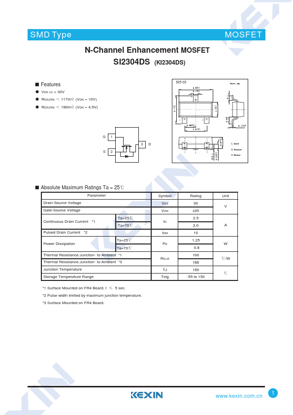 N-Channel Enhancement MOSFET SI2304DS (KI2304DS)