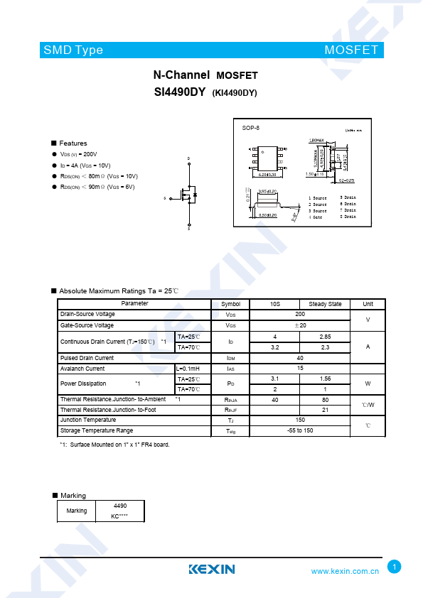 N-Channel MOSFET SI4490DY (KI4490DY)