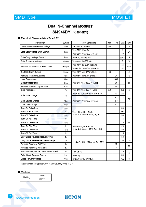 Dual N-Channel MOSFET SI4946DY (KI4946DY)