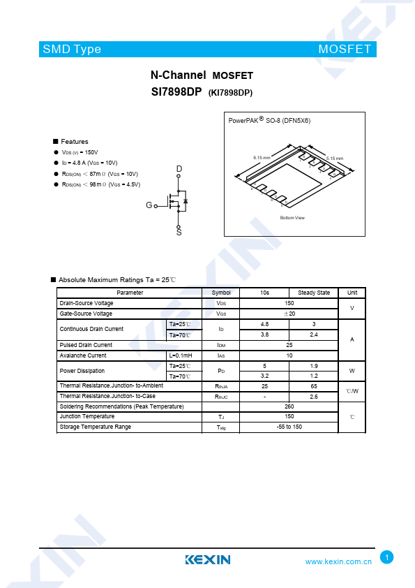 N-Channel MOSFET SI7898DP (KI7898DP)