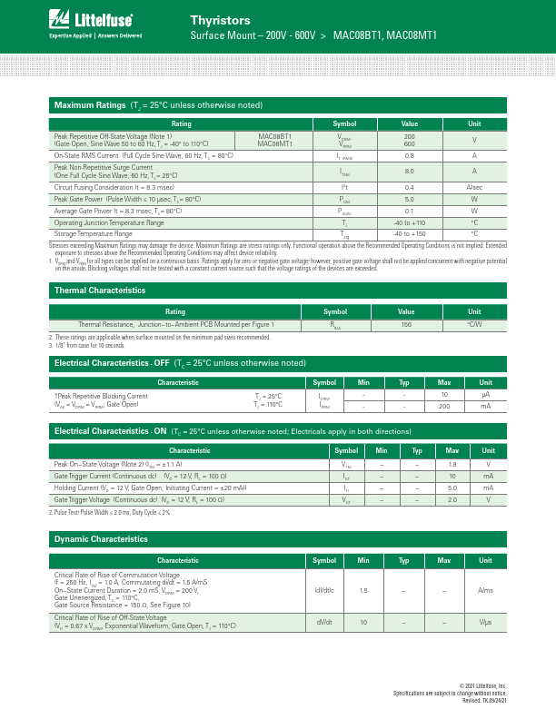 © 2021 Littelfuse, Inc. Specifications are subject to change without notice.