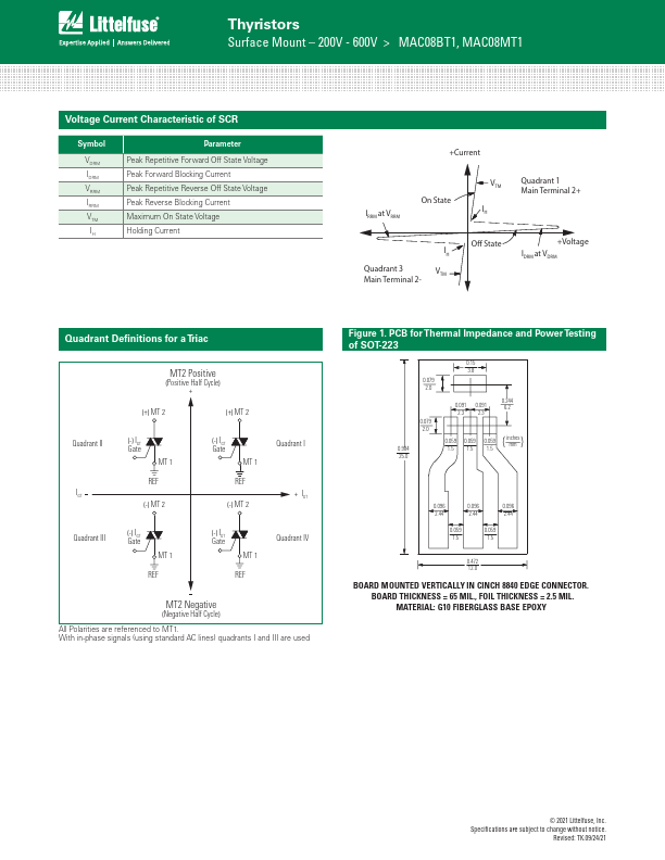 • Free Packages are Available Functional Diagram MT 2 MT 1 G Additional Information Resources Accessories © 2021 Littelfuse, Inc. Specifications are subject to change without notice. Revised: TK.09/24/21 Thyristors Surface Mount.