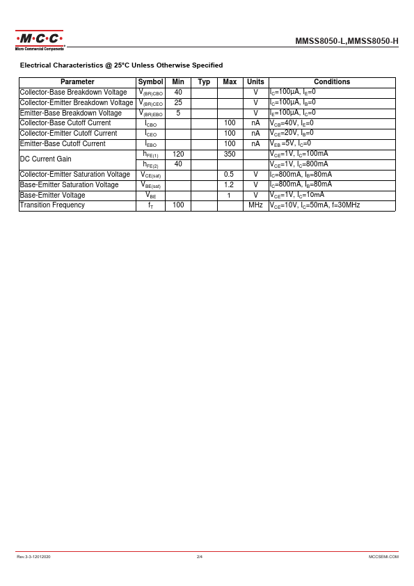 • Operating Junction Temperature Range: -55℃ to +150℃ • Storage Temperature Range: -55℃ to +150℃ • Thermal Resistance: 417℃/W Junction to Ambient