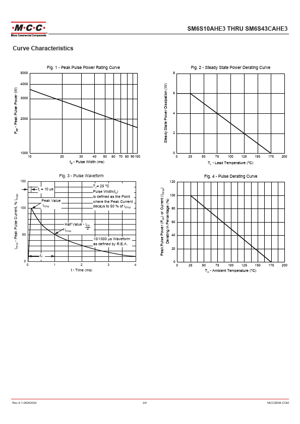 This page provides the datasheet information for the SM6S15CAHE3, a member of the SM6S10AHE3 4600 Watt TVS family.