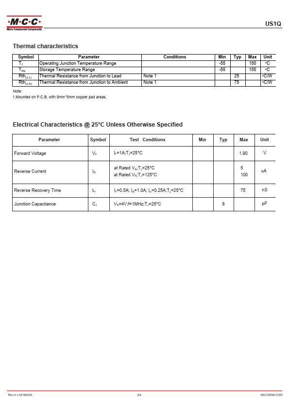 • Halogen Free. "Green" Device (Note 1) • Glass Passivated Chip Junction • Super Fast Recovery Time for High Efficiency • For Surface Mount Applications • Epoxy Meets UL 94 V-0 Flammability Rating • Moisture Sensitivity Level 1 • Lead Free Finish/RoHS Compliant (Note 2)("P" Suffix