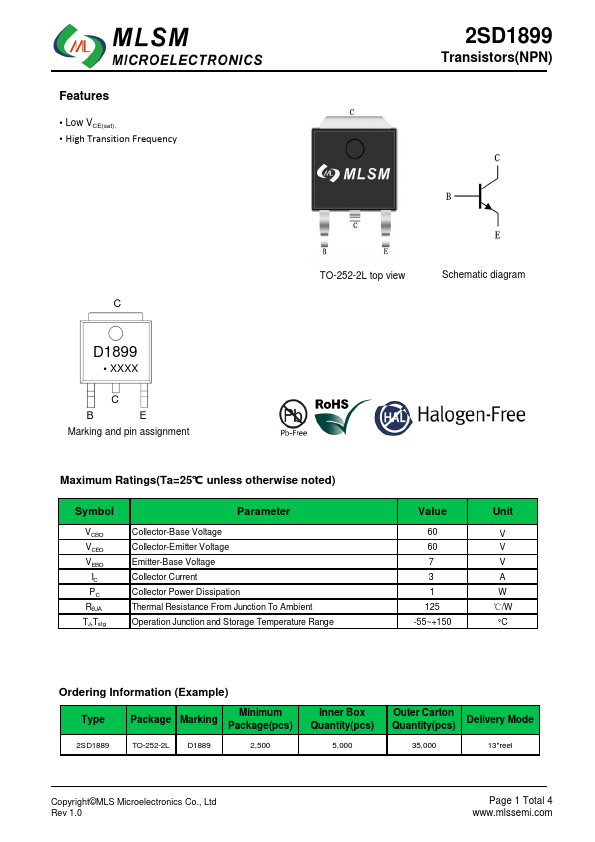| 2SD1899 | Silicon NPN Power Transistor | Inchange Semiconductor | |