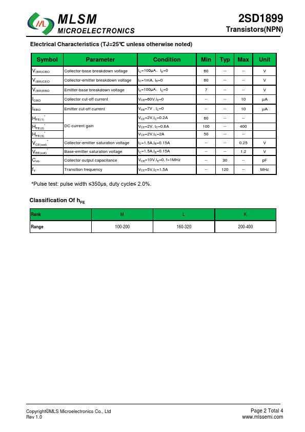 2SD1899 | NPN Epitaxial Planar Silicon Transistors | GME |