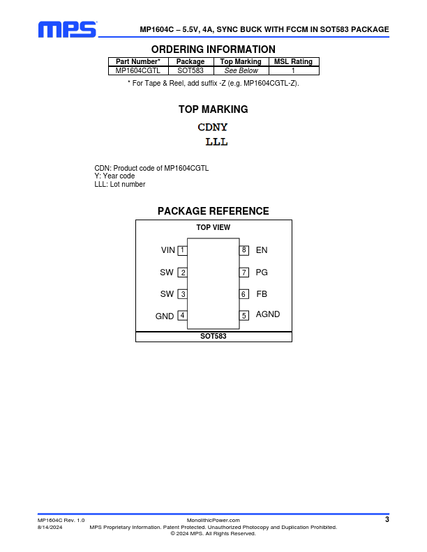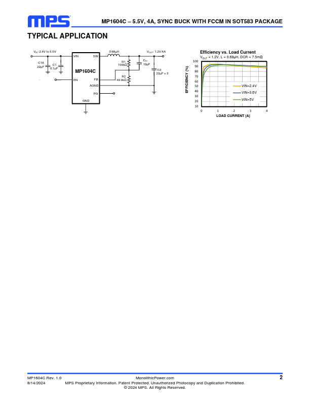 The MP1604C is a monolithic, step-down switchmode converter with built-in internal power MOSFETs.