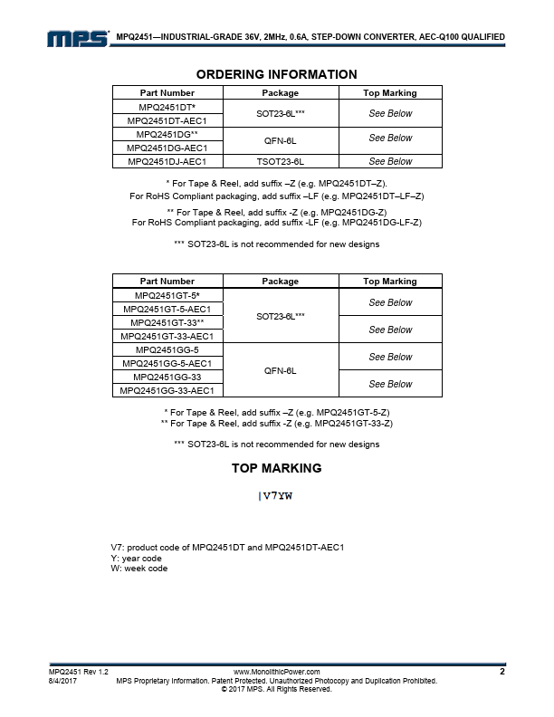 This datasheet PDF includes multiple part numbers: MPQ2451DT, MPQ2451. Please refer to the document for exact specifications by model. |