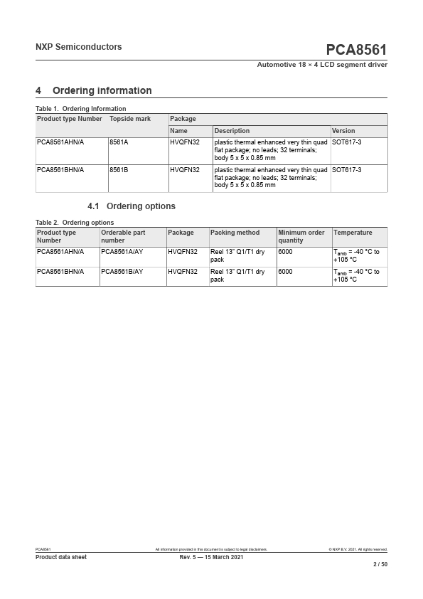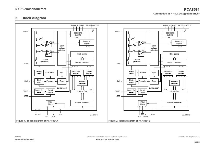 PCA8561 is an ultra low-power LCD segment driver with 4 backplane- and 18 segmentdriver outputs, with either an I2C- or an SPI-bus interface.