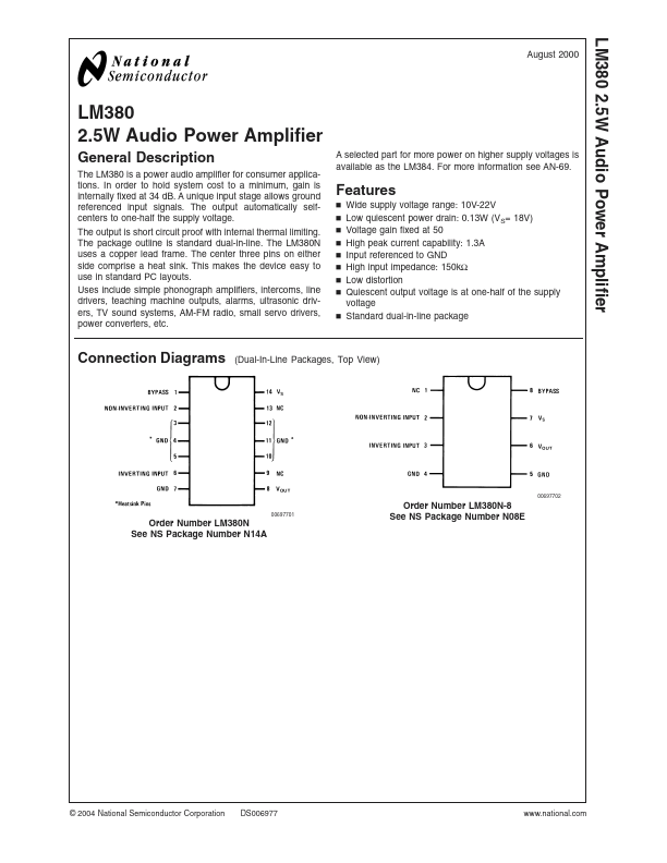 The LM380 is a power audio amplifier for consumer applications.