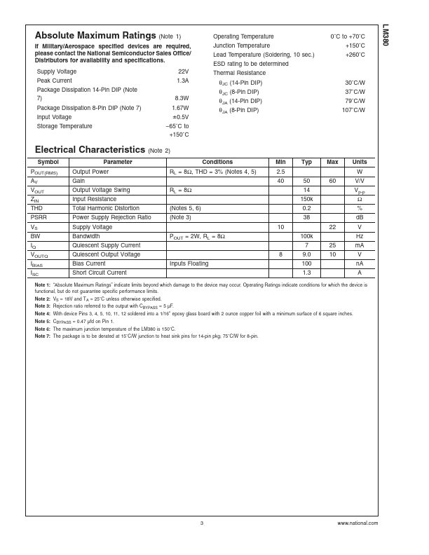 | LM380 | 2.5W Audio Power Amplifier | Texas Instruments |