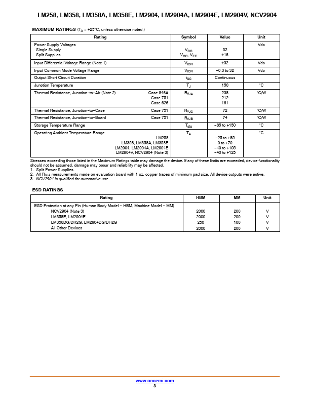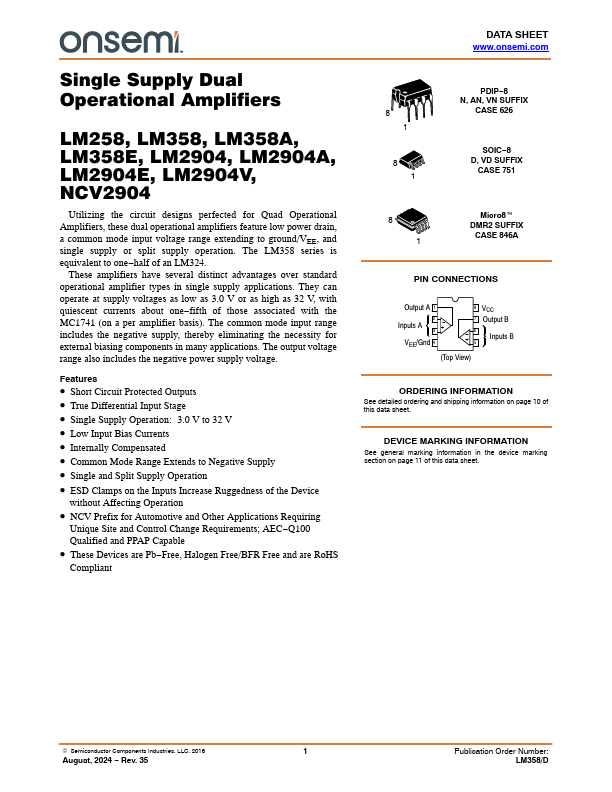 LM258, LM358, LM358A, LM358E, LM2904, LM2904A, LM2904E, LM2904V, NCV2904
