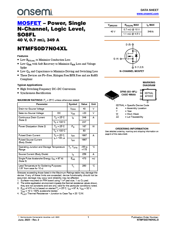| NTMFS0D7N04XM | N-Channel MOSFET |