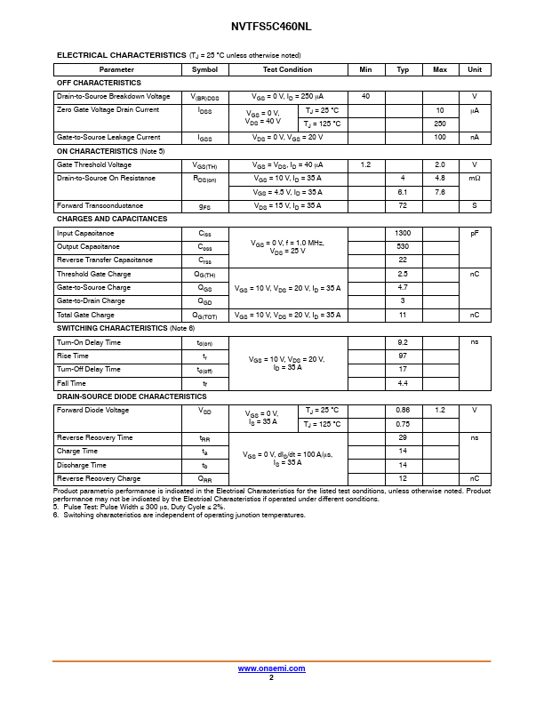 | Part number | NVTFS5C460NL |