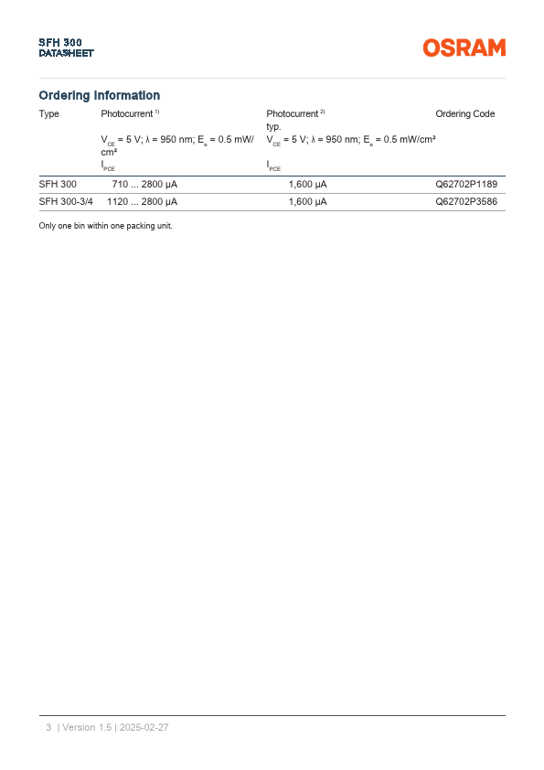 | Part number | SFH300 |