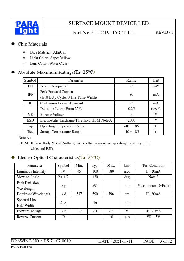 | Part number | L-C191JYCT-U1 |