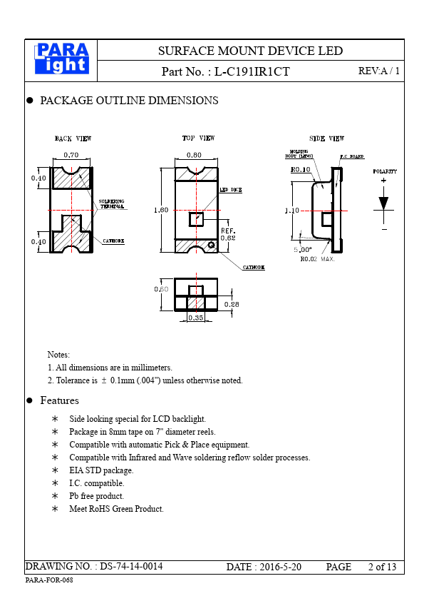 | Description | SURFACE MOUNT DEVICE LED |