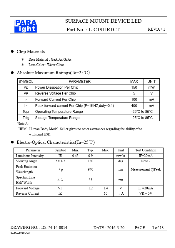 | Part number | L-C191IR1CT |