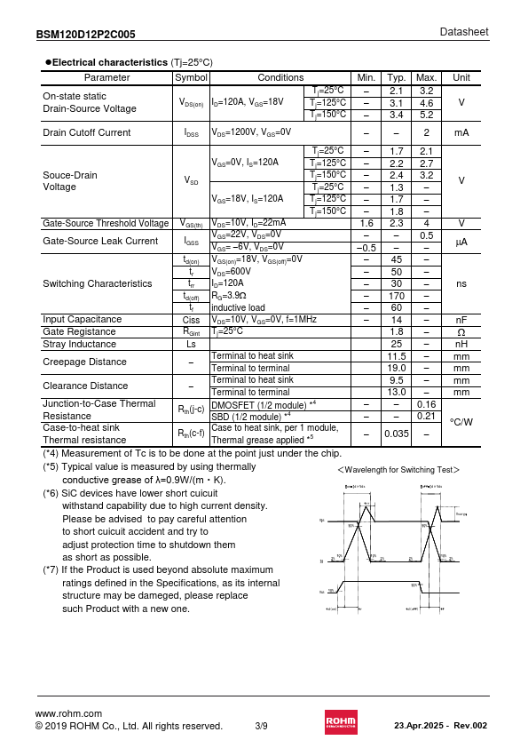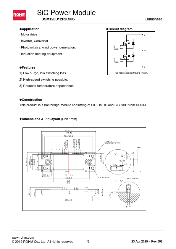 lConstruction This product is a half bridge module consisting of SiC-DMOS and SiC-SBD from ROHM.