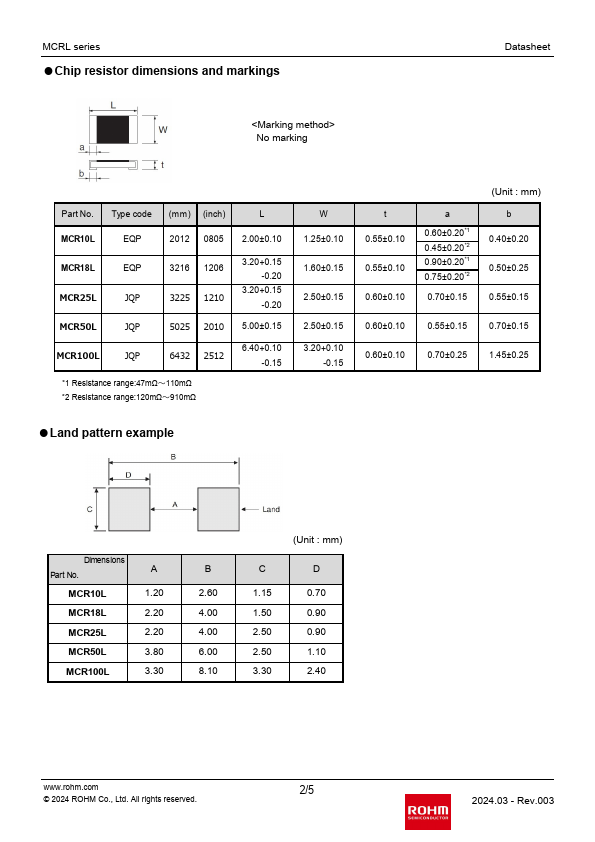 | Description | General Purpose Chip Resistors |