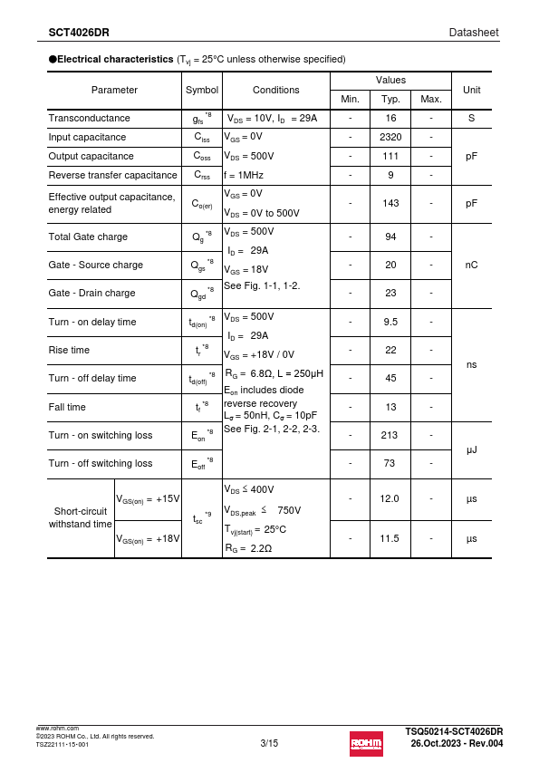 ● Features 1) Low on-resistance 2) Fast switching speed 3) Fast reverse recovery 4) Easy to parallel 5) Simple to drive 6) Pb-free lead plating ; RoHS compliant