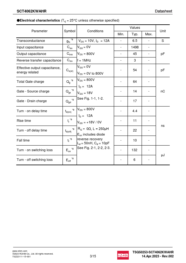 ā Features 1) Qualified to AEC-Q101 2) Low on-resistance 3) Fast switching speed 4) Fast reverse recovery 5) Easy to parallel 6) Simple to drive 7) Pb-free lead plating ; RoHS compliant 8) Wide creepage distance = min.4.7mm ā Application Automobile Switch mode power supplies