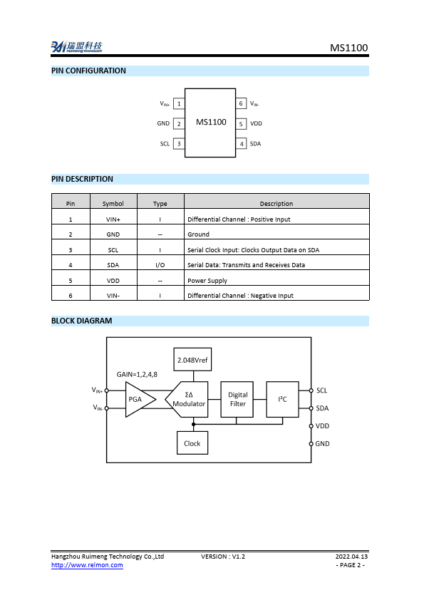 The MS1100 is a precision, continuously self-calibrating ADC up to 16 bits resolution.