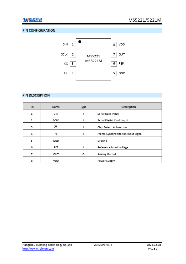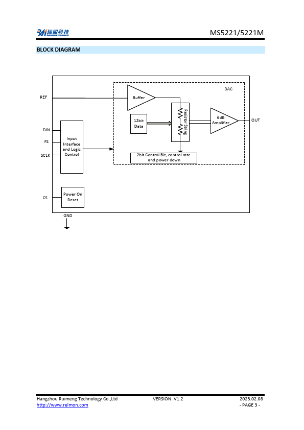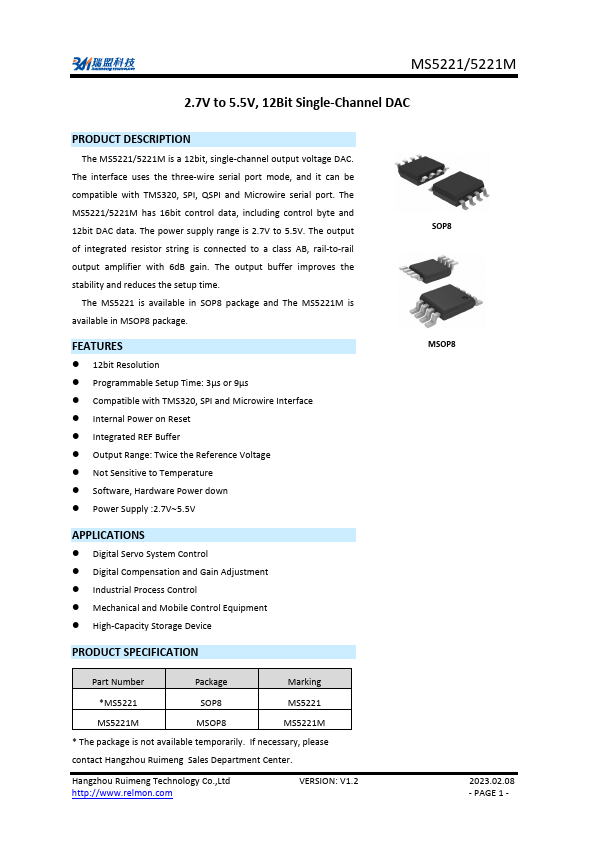 The MS5221/5221M is a 12bit, single-channel output voltage DAC.