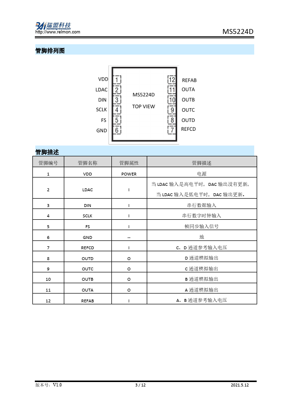 | Description | 2.7V to 5.5V 12-bit four-channel analog-to-digital converter |