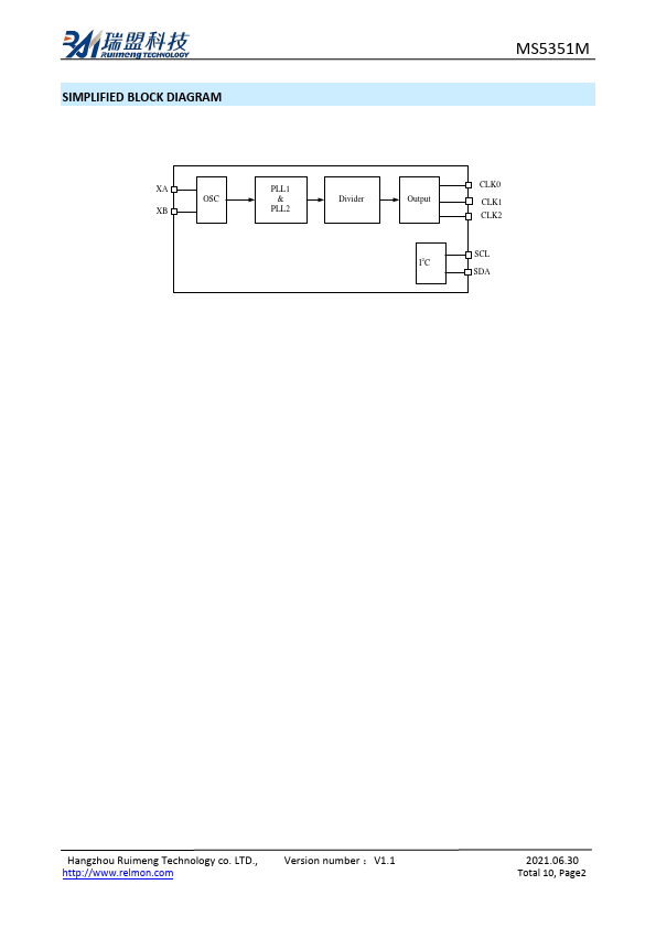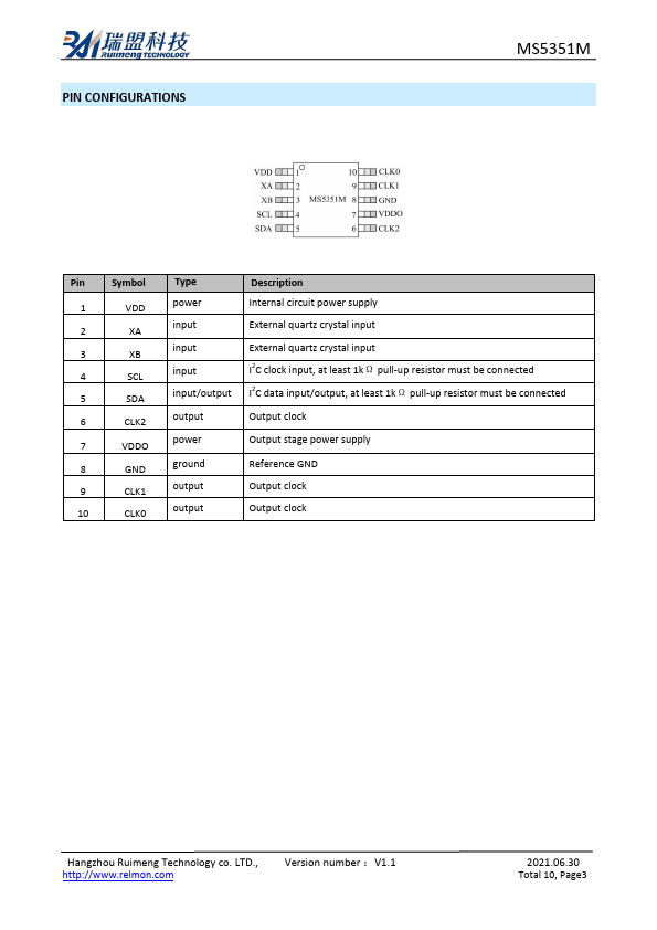 MS5351M is an I2C configurable, 3-channel output clock generator chip, which can completely replace crystals, crystal oscillators, phase-locked loops, and output buffers used in cost-sensitive applications.