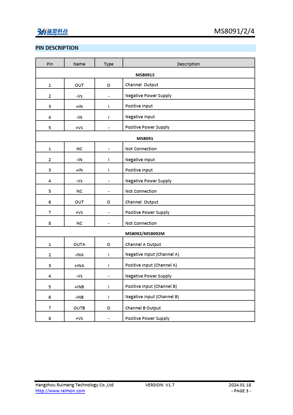 This datasheet PDF includes multiple part numbers: MS8094, MS8091. Please refer to the document for exact specifications by model. |