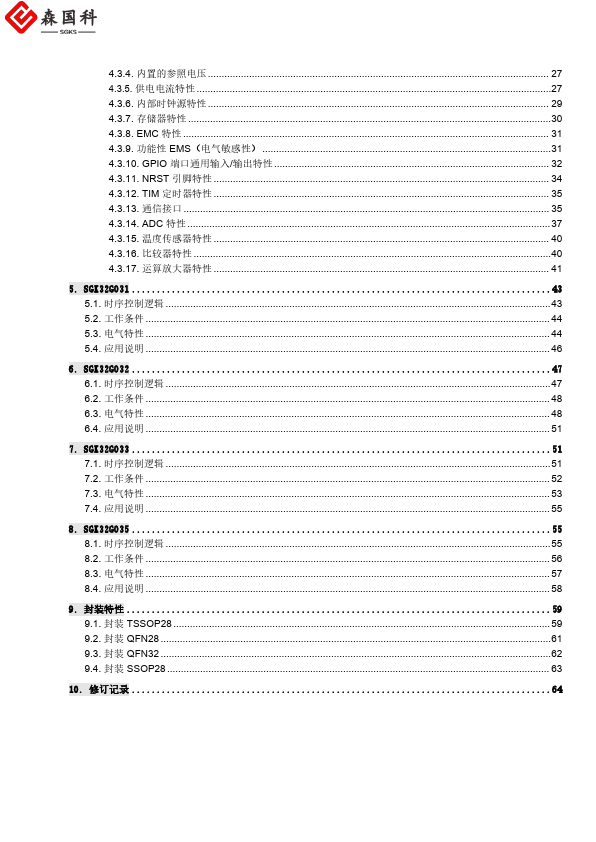 This datasheet PDF includes multiple part numbers: SGK32F033, SGK32F031. Please refer to the document for exact specifications by model. |