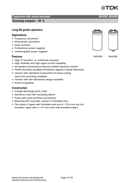 This datasheet PDF includes multiple part numbers: B43456-S9758-M002, B43456. Please refer to the document for exact specifications by model. |