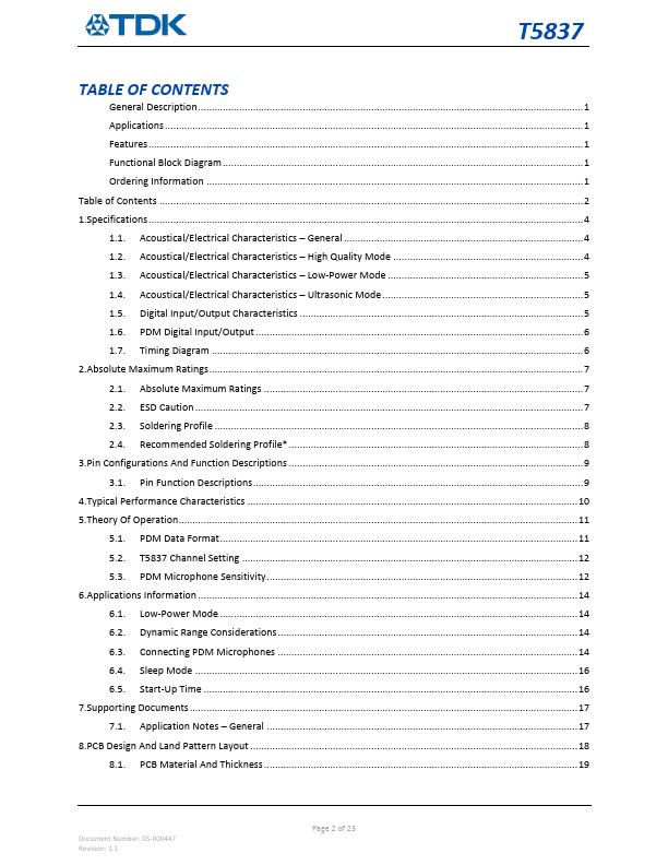 | Description | Bottom Port PDM Digital Output Multi-Mode Microphone |
