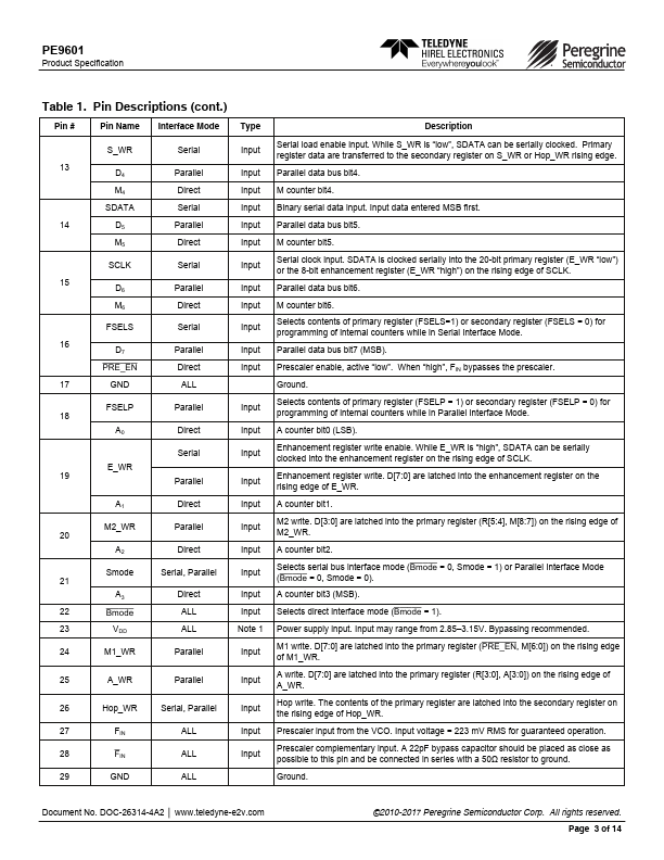 Peregrine’s PE9601 is a high-performance integer-N PLL capable of frequency synthesis up to 2200 MHz.