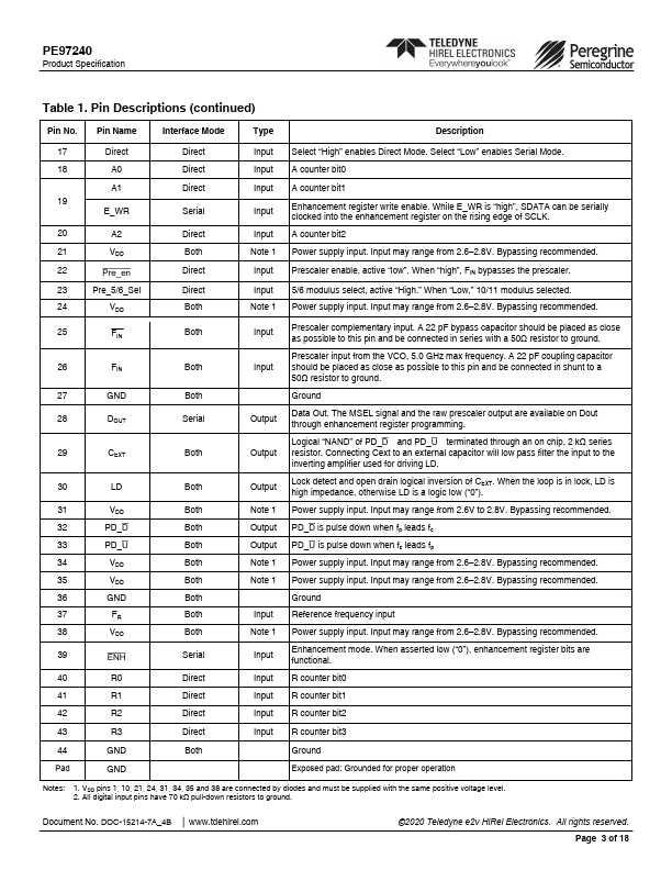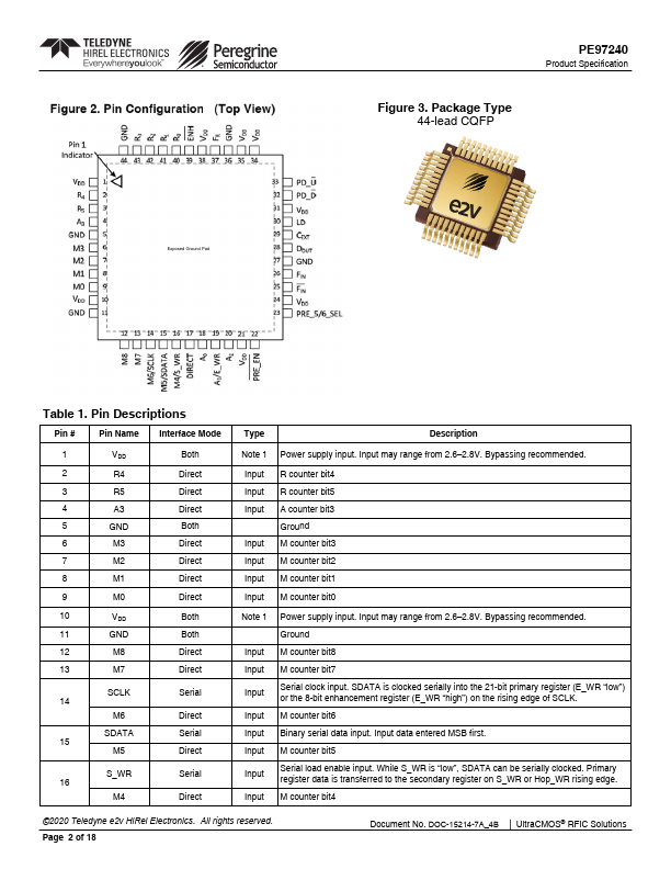 Peregrine’s PE97240 is a radiation tolerant highperformance Integer-N PLL capable of frequency synthesis up to 5 GHz.