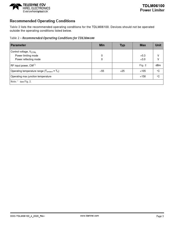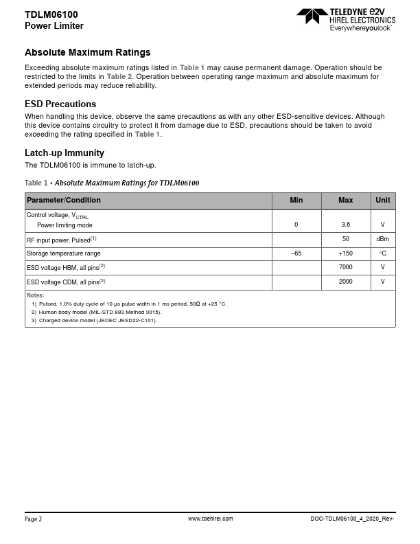 The TDLM06100 is a RF power limiter qualified for operating in harsh environments, including military, space , avionics and medical applications.