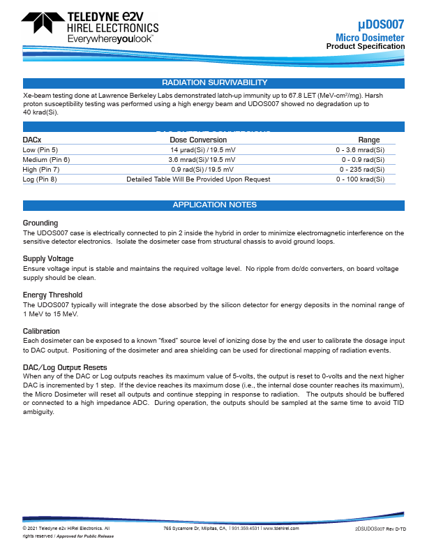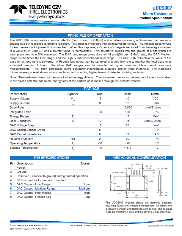 This datasheet PDF includes multiple part numbers: uDOS007-C, uDOS007. Please refer to the document for exact specifications by model. |