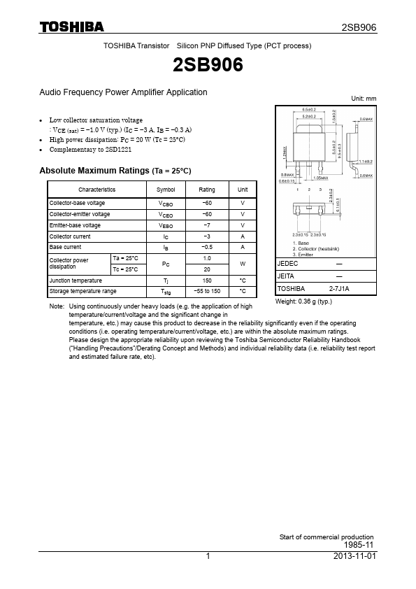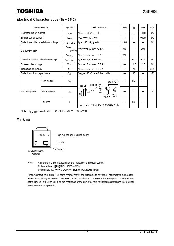 TOSHIBA Transistor Silicon PNP Diffused Type (PCT process)