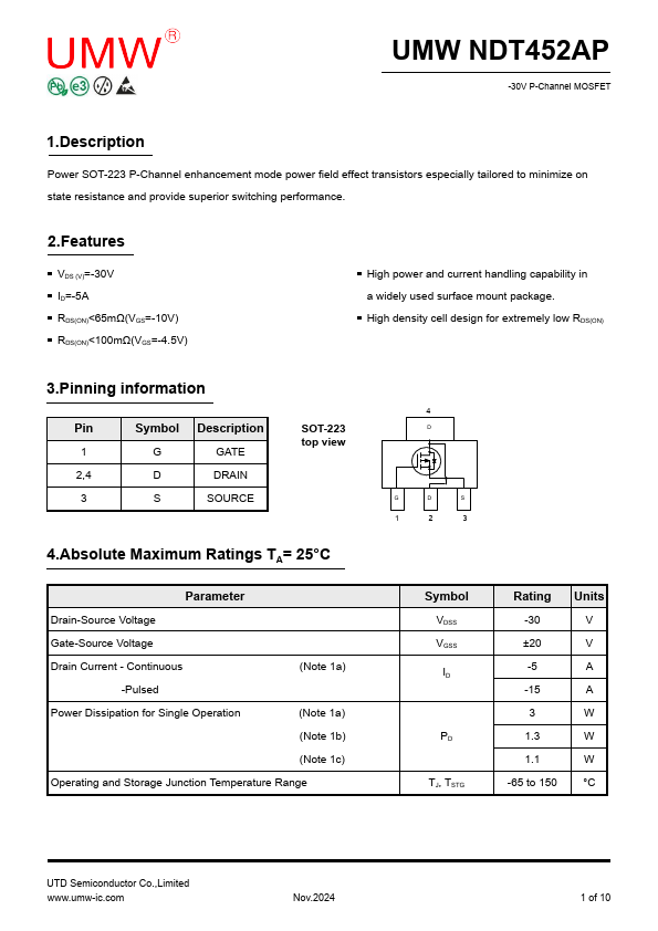 | NDT452AP | P-Channel MOSFET | Fairchild |