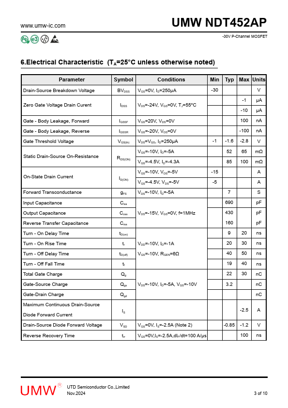 | Description | -30V P-ChanneI MOSFET |